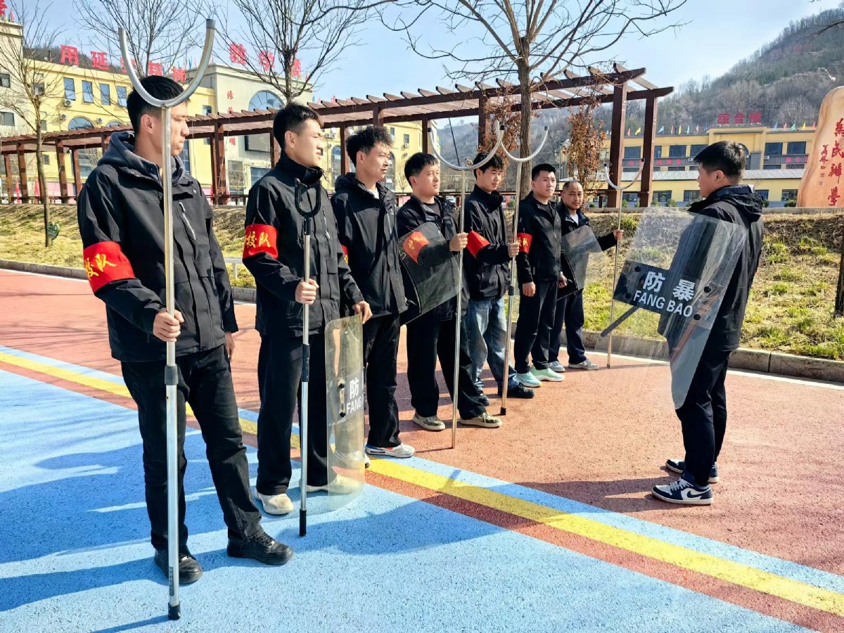 演练前,学校高度重视、周密部署,第一时间召开安全工作领导小组专项会议,细化演练方案,明确应急指挥、现场拦截、师生疏散等各岗位职责,全方位统筹安排,确保演练流程科学规范、环节衔接顺畅。同时,学校组织安保人员开展防暴器械专项实操培训,专业人员细致讲解钢叉、盾牌、电棍等装备的使用方法与协同技巧,通过实操演练让安保人员熟练掌握操作要领与应急处置流程,全面提升实战防护能力,为演练有序开展筑牢前期保障。