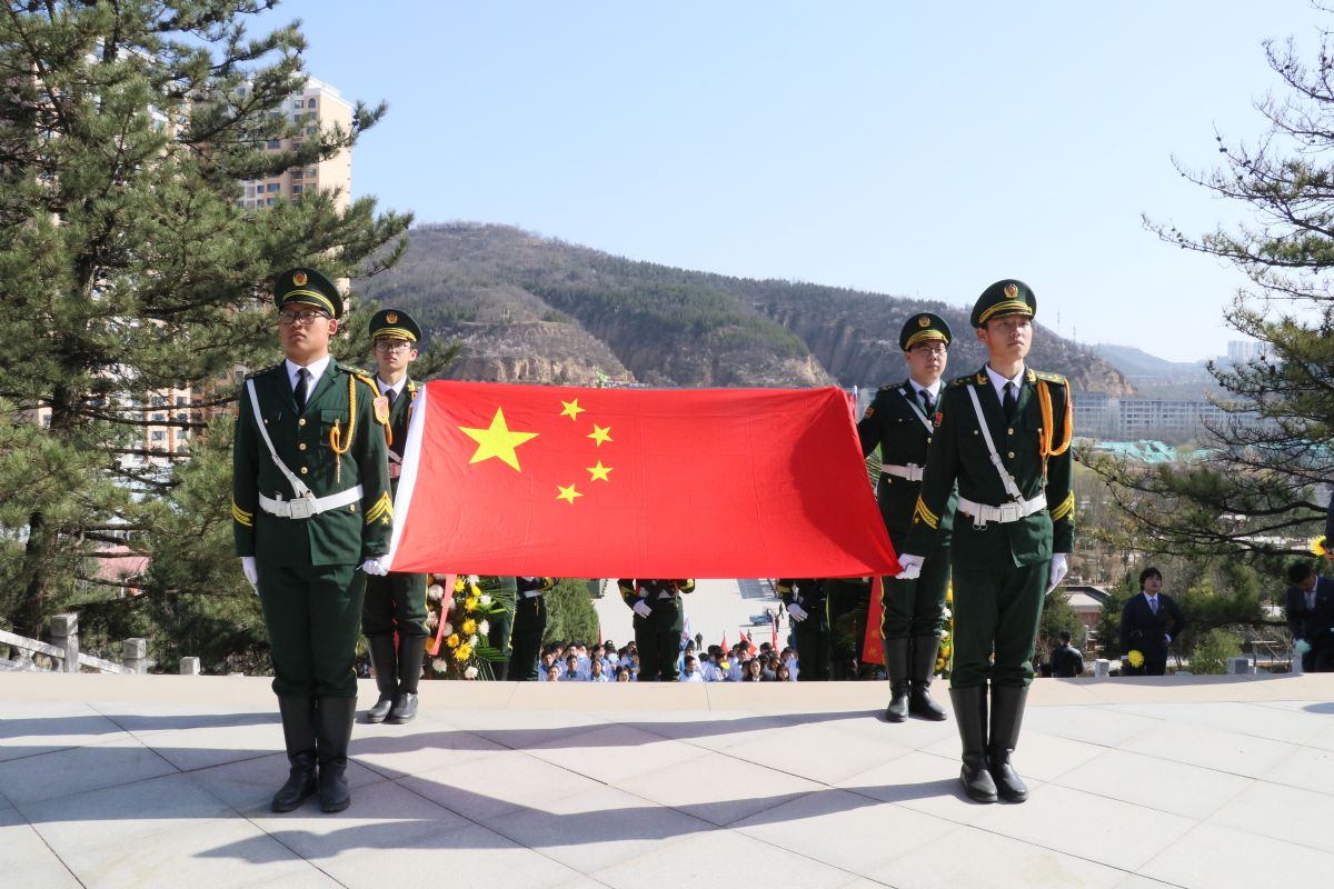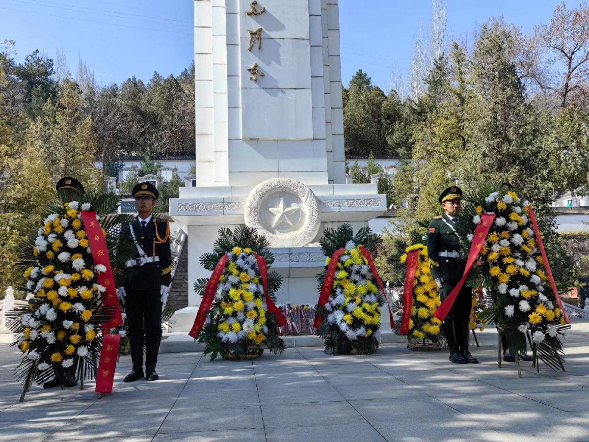 鲜花献英烈,哀思祭忠魂。延安博文中学礼兵向英烈敬献花篮。鲜艳的花篮承载着全校师生的敬意,在纪念碑前静静安放,诉说着对先烈的深切追思。