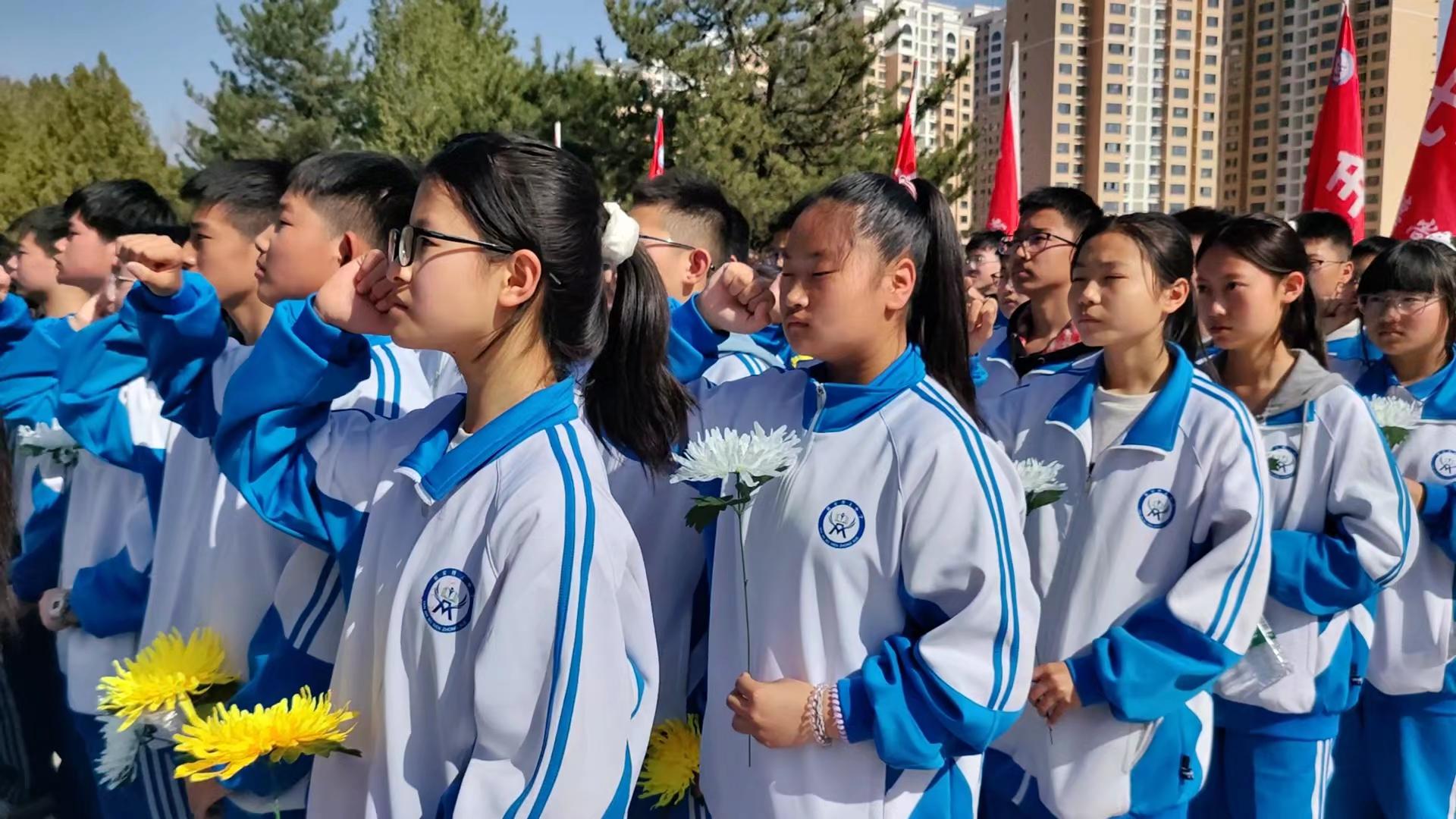 全体师生有序上前,敬献菊花、躬身致敬。朵朵素菊,承载着跨越时空的追思与敬意,也象征着革命薪火在新时代生生不息、代代相传。
