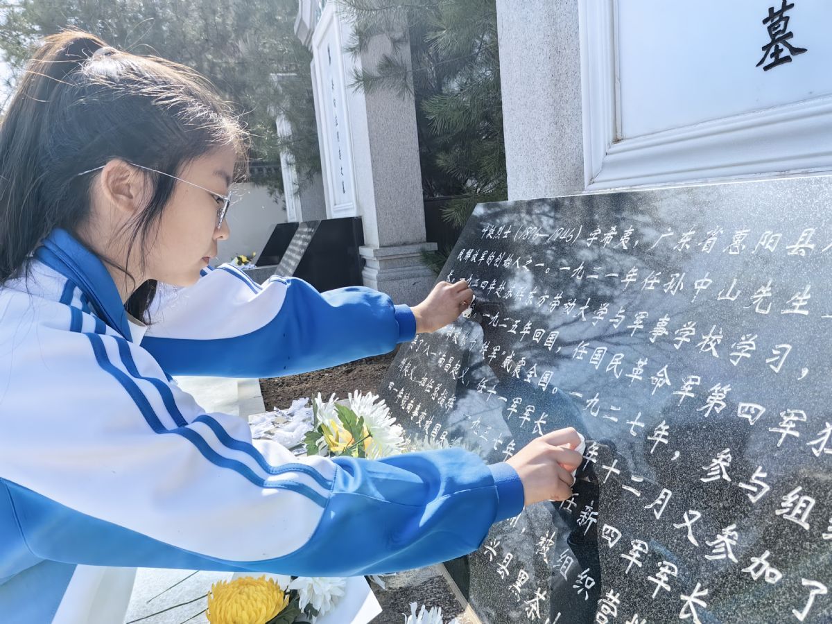 清明时节的四八烈士陵园,苍松挺拔、翠柏葱茏。同学们神情庄重肃穆,怀着崇敬之心缓步前行。