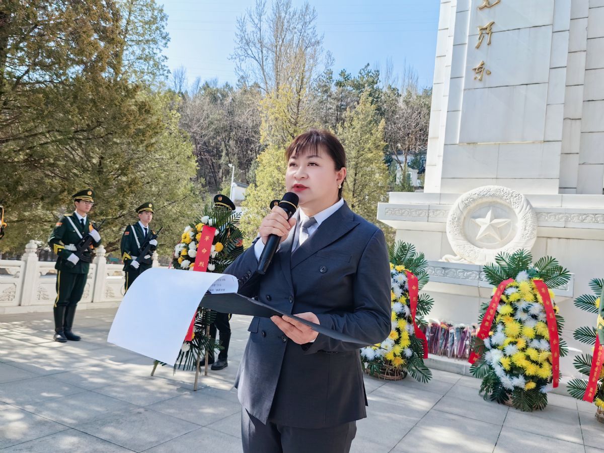 副校长袁巧艳发表致辞。她首先对全体师生展现出的良好风貌与文明素养给予肯定,向精心组织活动的教师团队致谢,并表扬了同学们的守纪表现。袁校长强调,本次祭扫既是缅怀先烈的仪式,更是一堂深刻的思想教育课,并与同学们分享三点感悟:传承先烈精神要立足小事、践行初心;文明素养藏于细节、贵在坚持;安全纪律护航成长、行稳致远。她勉励全体学子,缅怀先烈不止于仪式,更要将感动化为行动,以日常点滴践行红色初心,努力成长为有理想、有担当的新时代好少年。