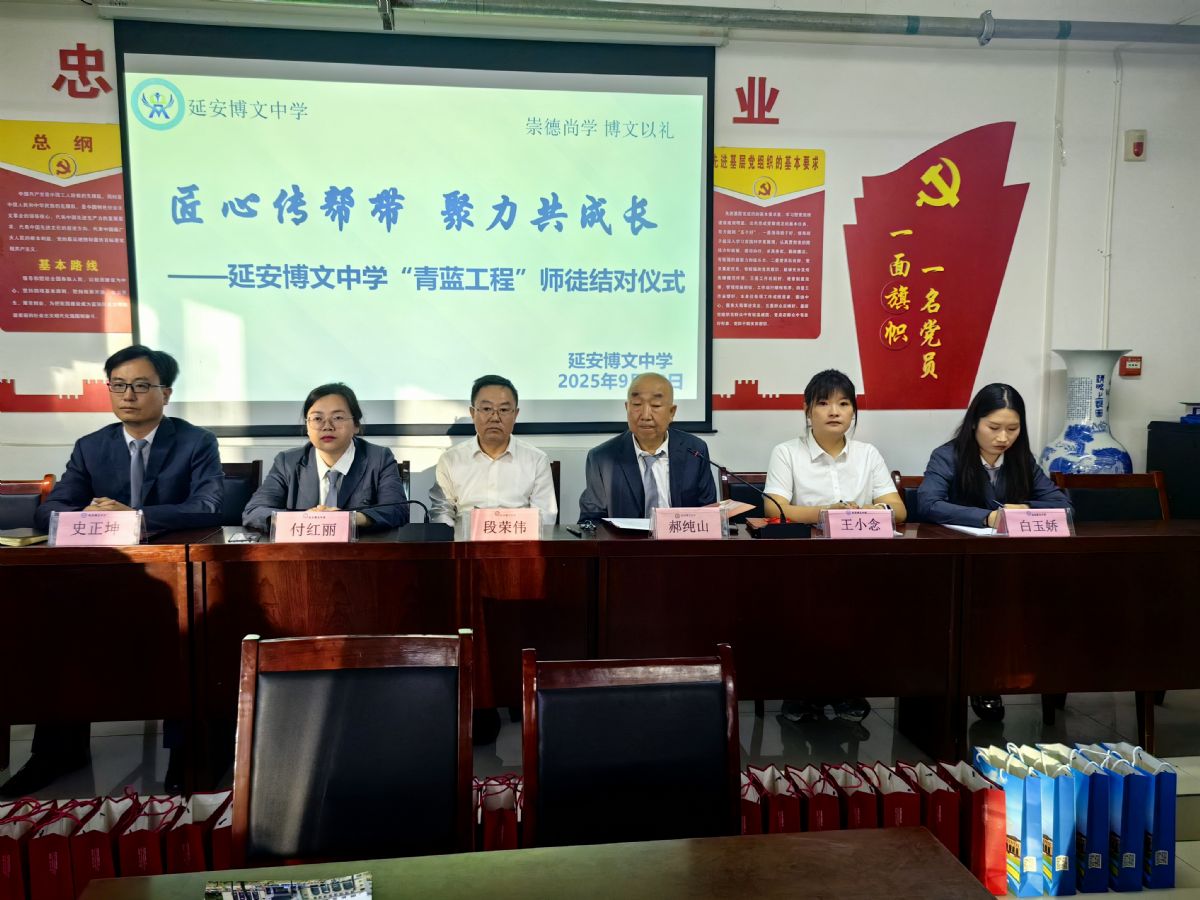 匠心传帮带,聚力共成长延安博文中学2025年“青蓝工程”师徒结对仪式在第41个教师节到来之际,延安博文中学于2025年9月10日下午举行了“