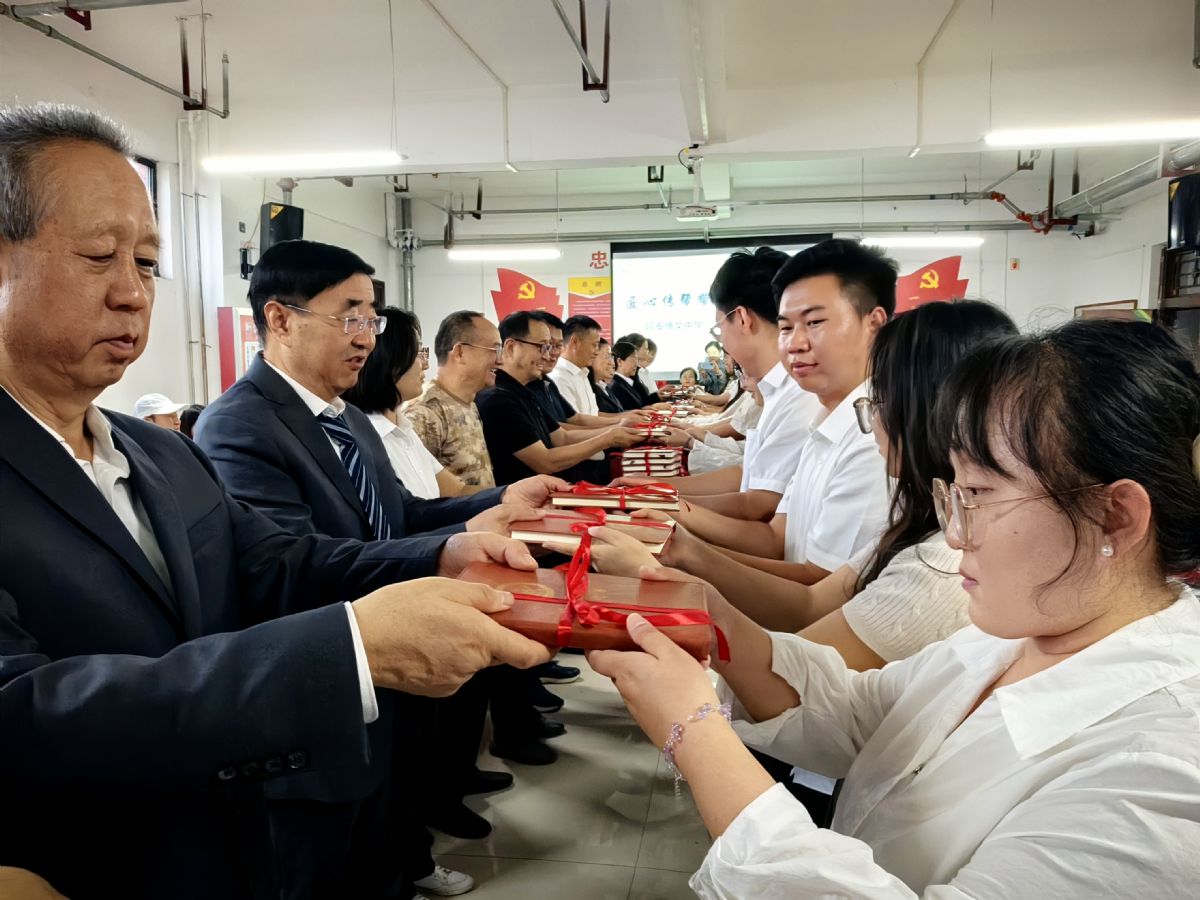 在拜师与签字环节,师傅与徒弟郑重签署结对协议,徒弟向师傅敬茶赠礼,一杯清茶、一份薄礼,承载着深深的敬意与期许。
