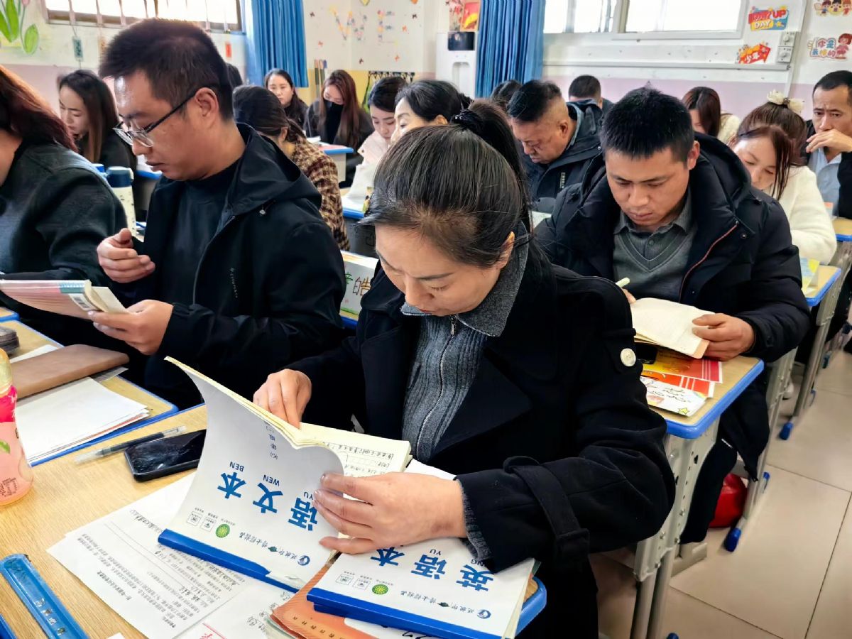 家长们认真翻看学生们的作业本、练习册,进一步了解孩子们的学习情况。