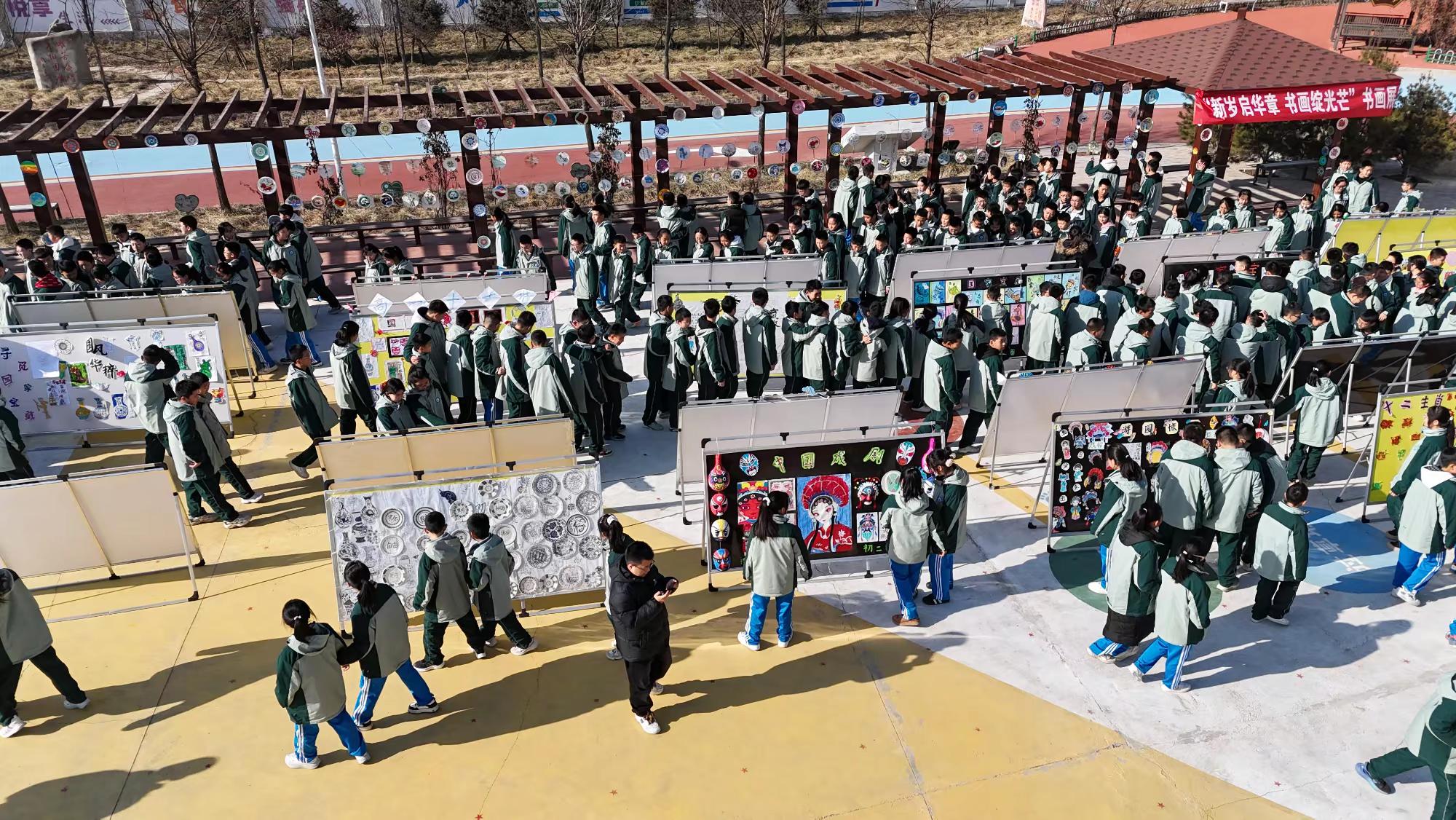 12月30日,校园书画展率先拉开元旦系列活动的帷幕。一幅幅书画作品或笔墨酣畅或色彩明丽,既有描绘祖国山河的壮丽画卷,也有书写经典诗词的书法佳作,更有孩子们以童真视角创作的创意画作。作品皆出自师生之手,一笔一画间尽显对中华传统文化的热爱,在一纸一墨中饱含对新年的美好期许。观展师生驻足流连,在笔墨丹青间感受艺术之美,在交流探讨中传递文化薪火。