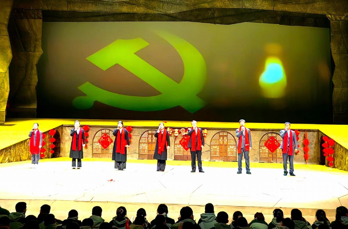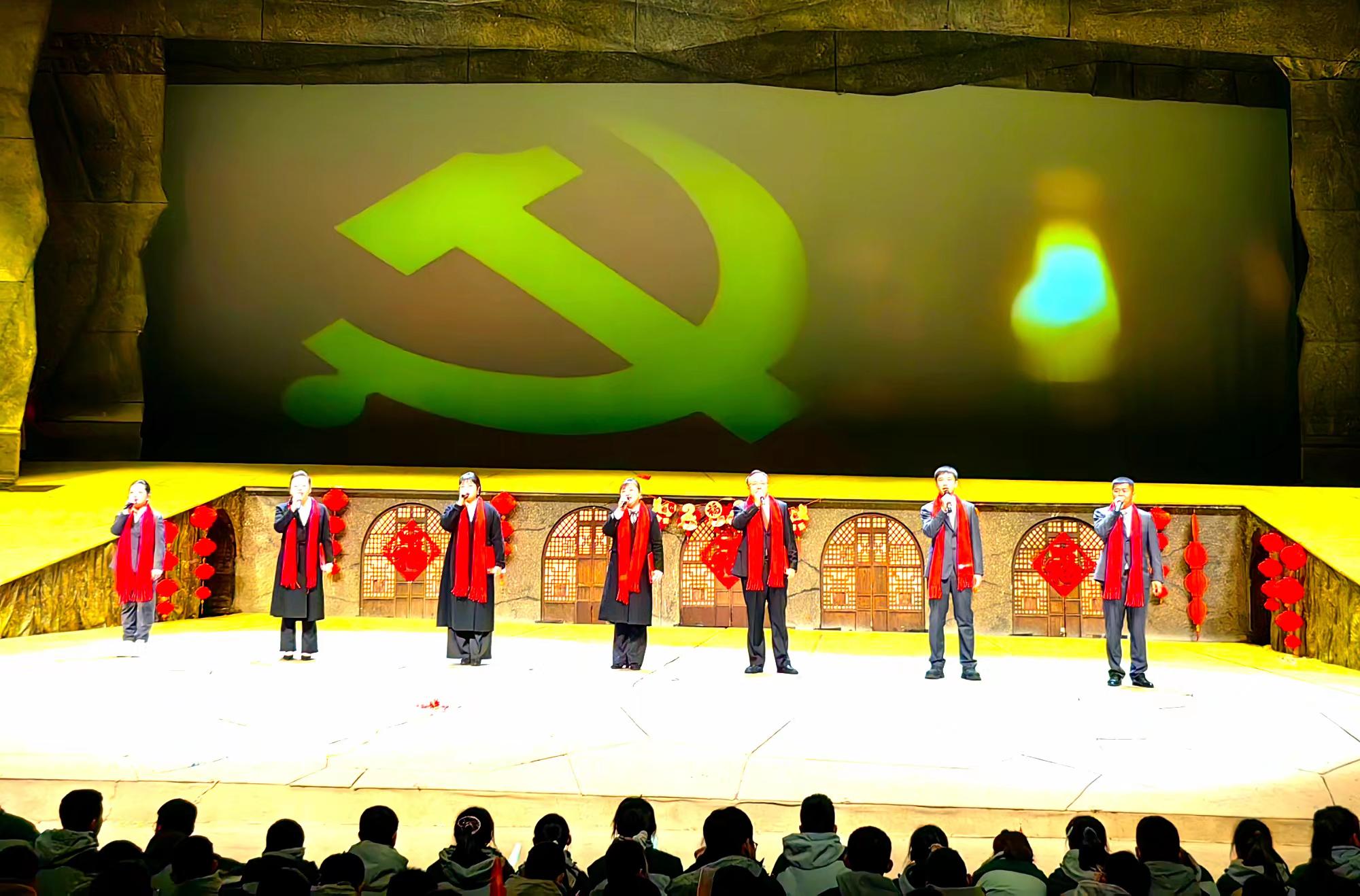 开场舞《美丽中国》用灵动的舞姿勾勒出山河锦绣的画卷,瞬间点燃现场氛围;初一学子带来的说唱《山河永念,不屈中华》,以铿锵节奏抒发炽热的家国情怀;高一教师合唱《壮美延安》,歌声中饱含对红色土地的深情与眷恋。
